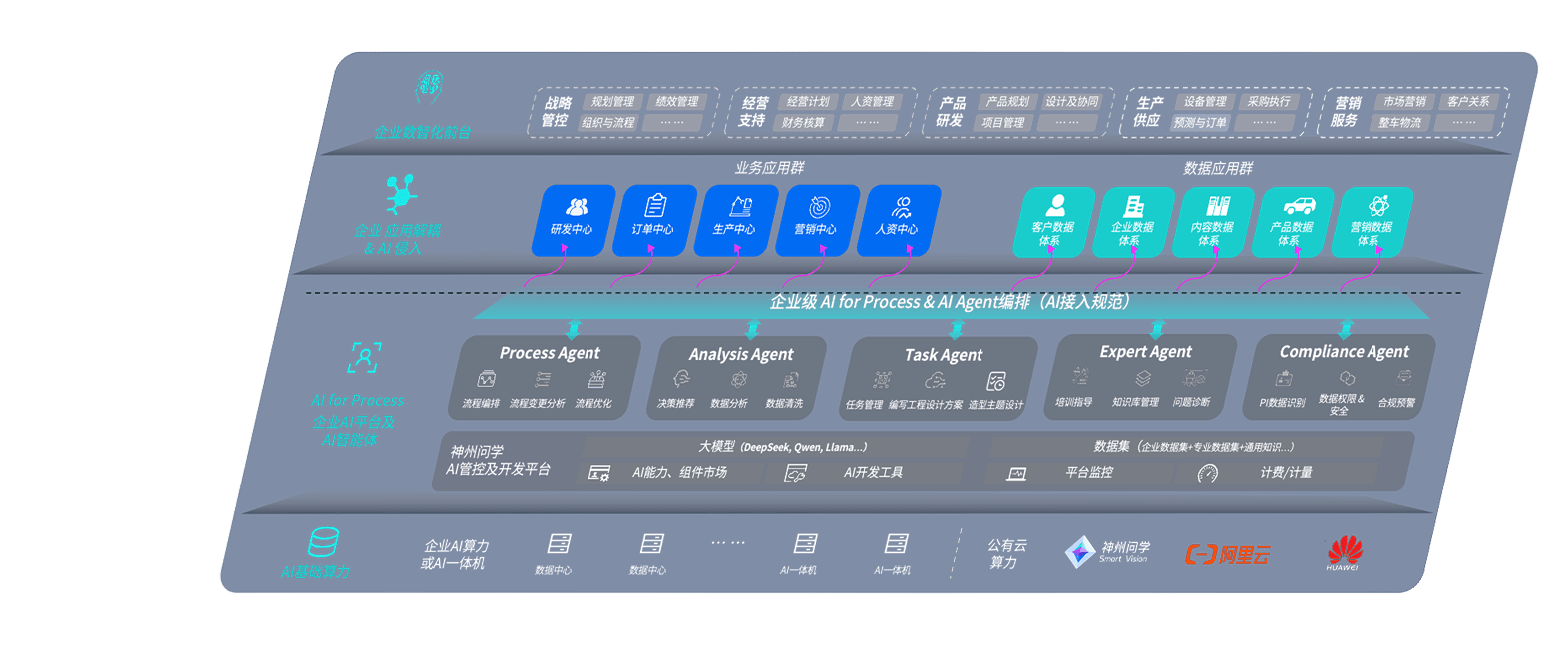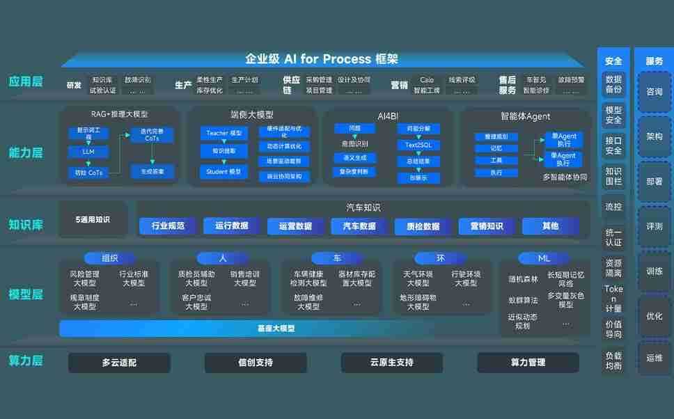 端到端的一站式AI工作空间深度融合了从企业战略规划到日常经营的全流程业务板块,,,,定向解决车企内部领域多、、、、部门多、、、链条长、、、场景碎片化等难题,,支持车企快速构建以AI为核心的生产力写作体系,,,,实现任务执行与AI能力的无缝集成与交互