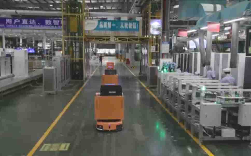 为车载冰箱物流配送打造的智能解决方案,,,包含产中物流通过潜伏举升AMR搬运至线边,,产后成品物流智能仓储,,,流程包含产中物流智能齐套入库,,,,线边安灯叫料AMR智能配送至线边,,成品入库、、出库,,,通过无人堆高车机器人,,,,智能仓储管理替代人工作业管理,,,,实现更高存储、、更高效率、、更具柔性化的解决方案。。。。